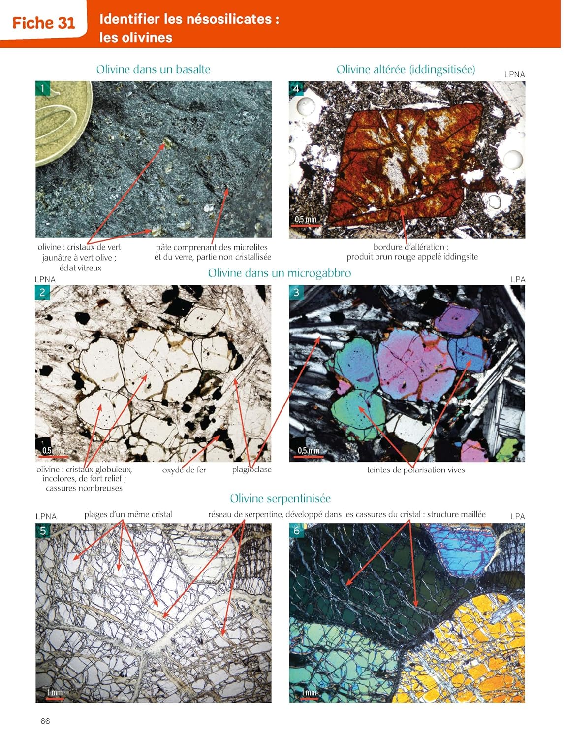 L’ouvrage offre une vision synthétique et structurée des minéraux et roches les plus couramment rencontrés dans les disciplines des sciences de la Terre. Chaque fiche décrit les caractéristiques macroscopiques et microscopiques des spécimens, en lien avec leur composition chimique et leur genèse. Les différentes familles de roches – magmatiques, sédimentaires, métamorphiques et même extra-terrestres – sont présentées selon une progression logique, permettant de relier observations de terrain et interprétation des processus géodynamiques.