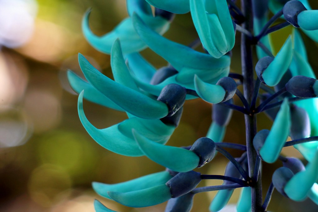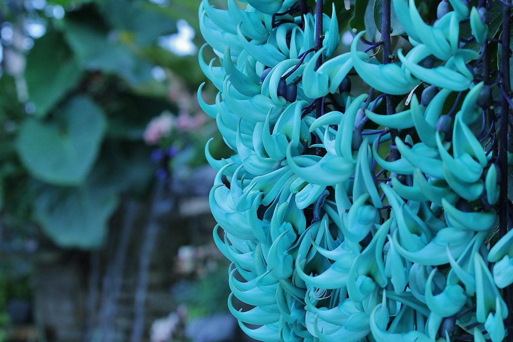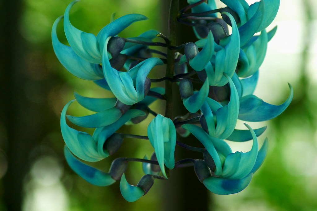 La fleur turquoise de la liane de jade, résultat d’une copigmentation rare, semble défier la palette habituelle du monde végétal. | © tieulinhclc