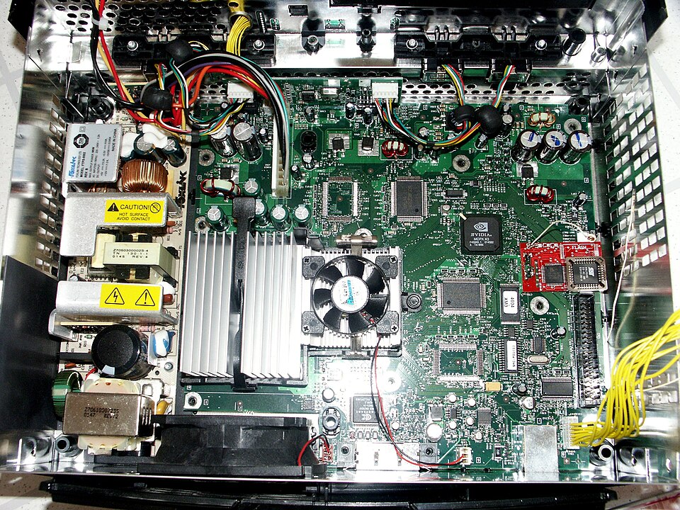 La Xbox, première console de salon développée par Microsoft, repose sur une architecture inspirée du PC, intégrant un processeur Intel Pentium III cadencé à 733 MHz, un GPU Nvidia NV2A à 233 MHz et 64 Mo de mémoire unifiée DDR SDRAM. Cette configuration lui permet d’offrir des performances 3D avancées pour son époque, avec un rendu haute résolution allant jusqu’au 1080i et une capacité de traitement géométrique théorique de plus de 100 millions de sommets par seconde.