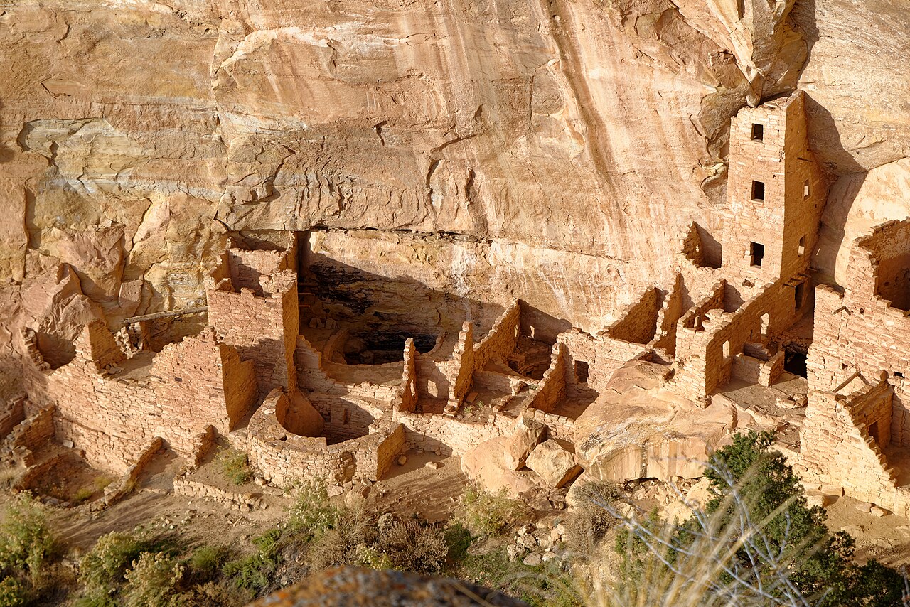 Au XIIIᵉ siècle, pendant la période Pueblo III, l’architecture atteint un degré remarquable de sophistication. Les grandes habitations troglodytiques sont édifiées dans les alcôves naturelles des falaises, tandis que des tours défensives apparaissent dans un contexte de tensions accrues. Entre 1276 et 1299, une sécheresse sévère — souvent qualifiée de « Grande Sécheresse » — fragilise un système agricole déjà soumis à de fortes pressions démographiques. Vers 1285, la région est progressivement abandonnée. Les habitants migrent vers le sud, notamment vers les vallées du Rio Grande, en Arizona et au Nouveau-Mexique, où leurs descendants vivent encore aujourd’hui dans des pueblos tels qu’Acoma, Zuni ou Jemez.